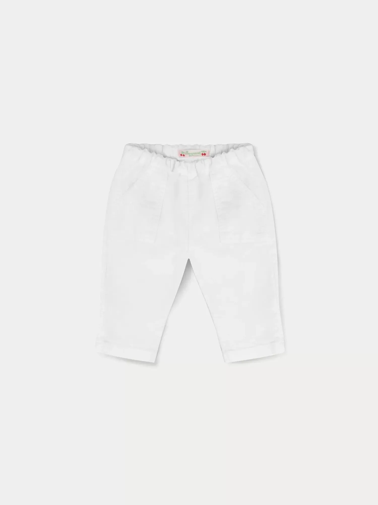 These Thursday Pants Give A Neat And Tidy Look As Well As Comfort To Babies. Styled In Stretch Cotton And With An Elasticated Waistband, They Give Great Freedom Of Movement. They Are Embellished With Two Patch Pockets In Front. The White Color Goes Well With A Dark Velvet Jacket.