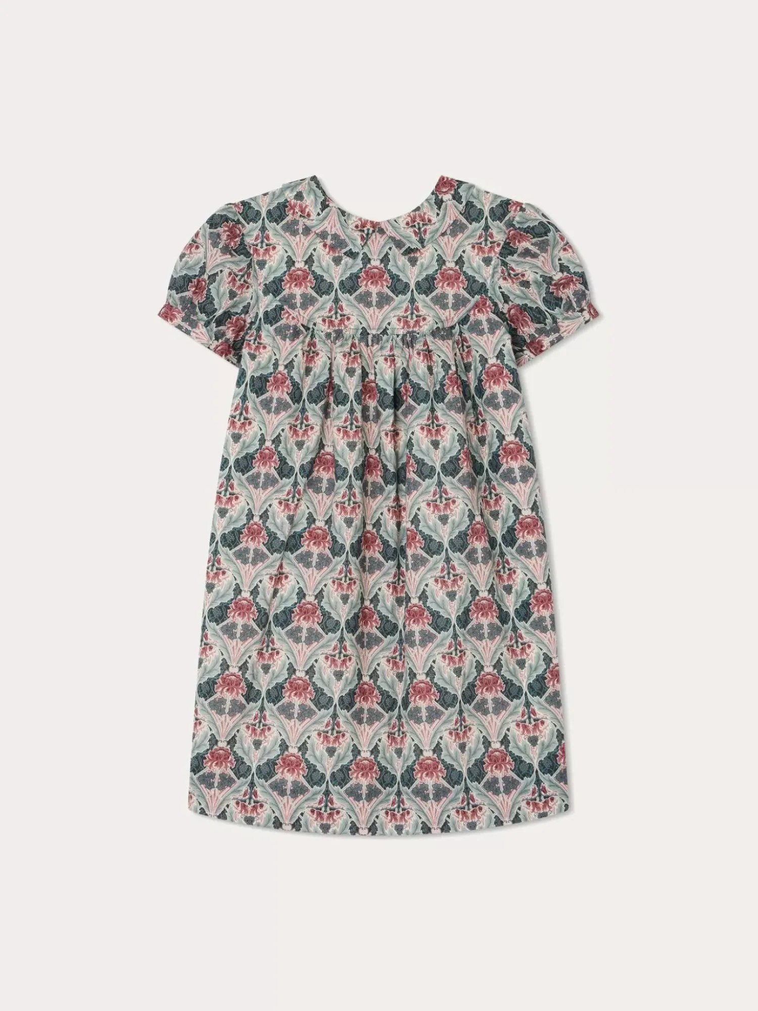 This Tia Dress For Girls Is Very Elegant With Its Shirt Collar And Short Puffed Sleeves. It Is Made From Organic-Cotton Liberty Fabric.