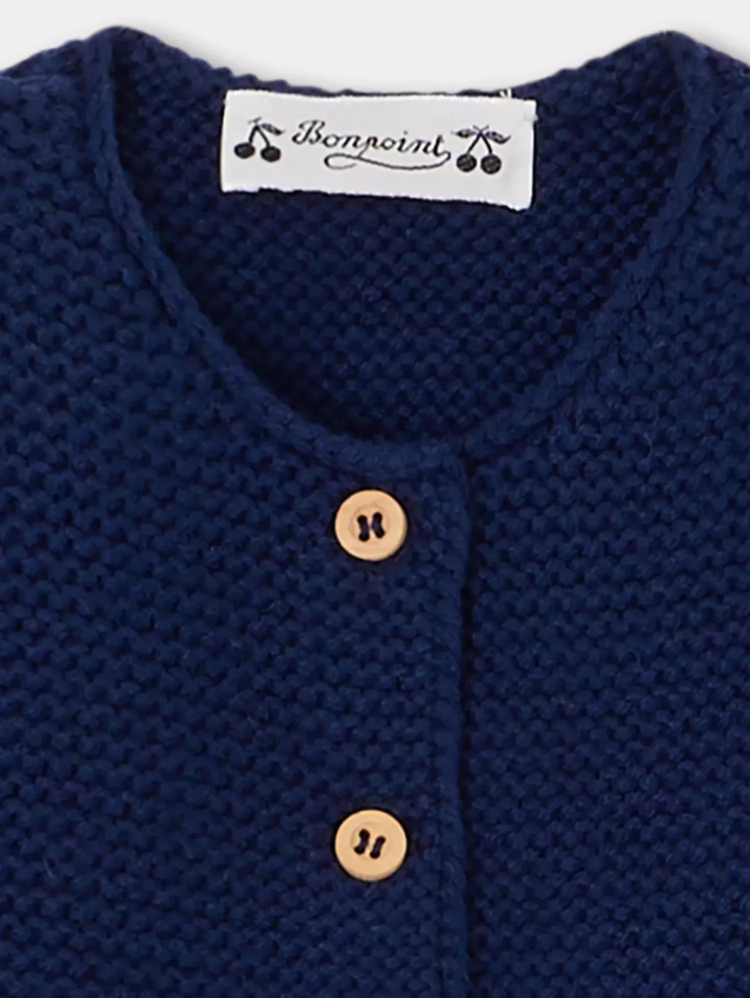 This Tiany Long-Sleeved Babies’ Cardigan Is Made Of A Blend Of Cotton And Wool And Has A Crew Neck And Contrasting Buttons. The Iconic Design Is Knitted Using A Garter Stitch And Is Easy To Put On.