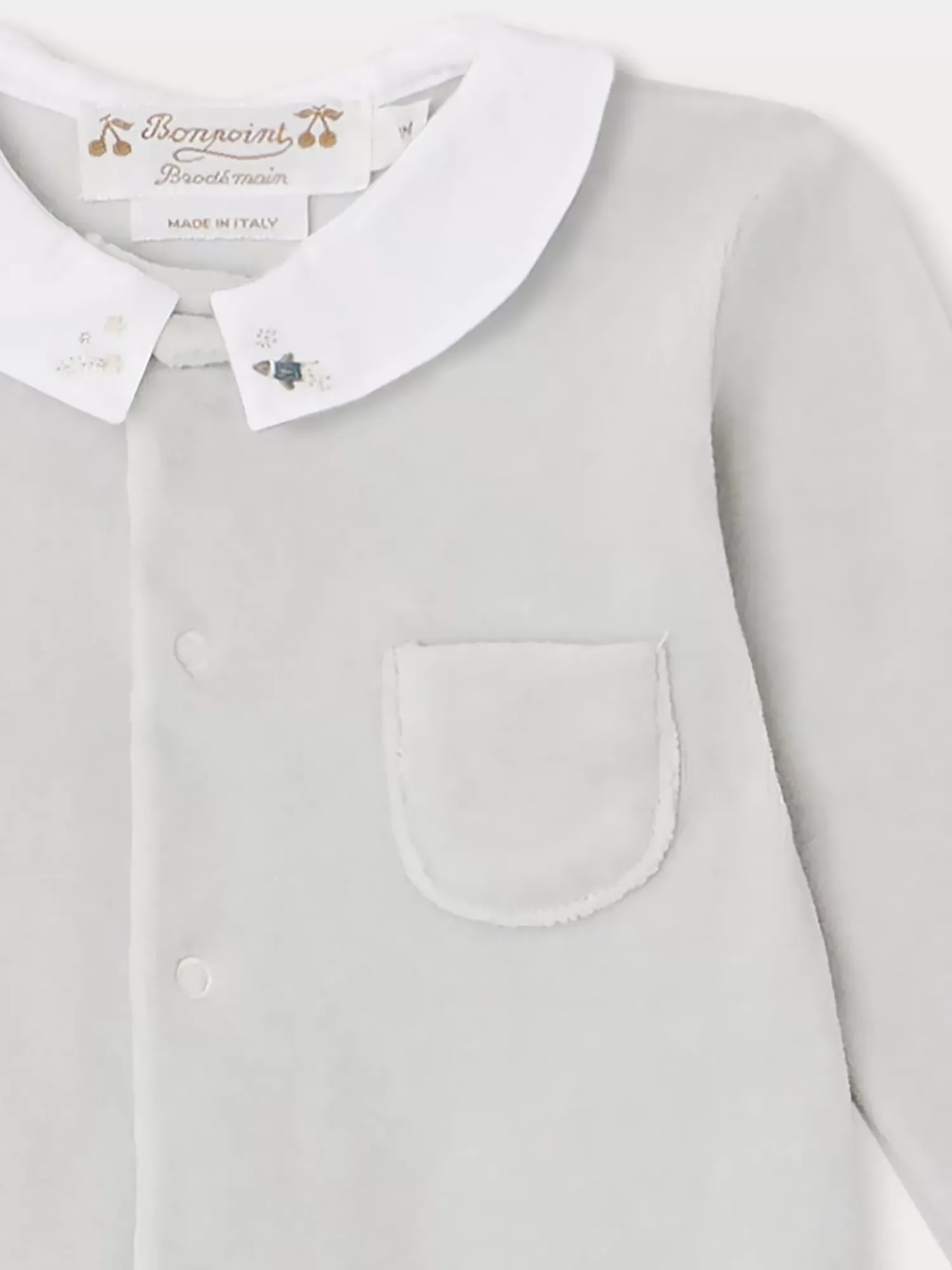 These Tilouan Pajamas For Babies Have An Elegant Hand-Embroidered Collar And A Small Patch Pocket On The Chest. They Are Primarily Made From Cotton Velvet For Additional Comfort.