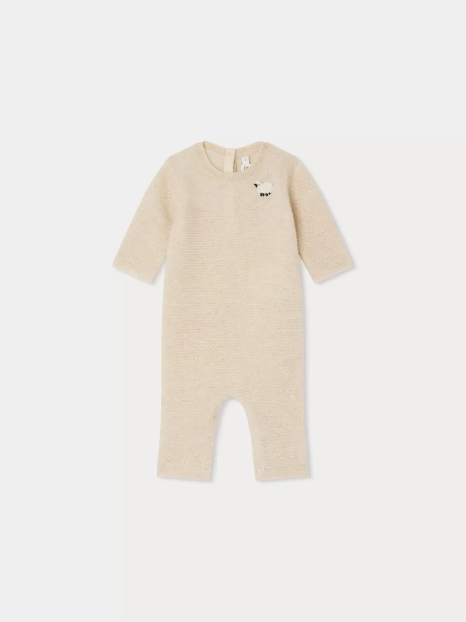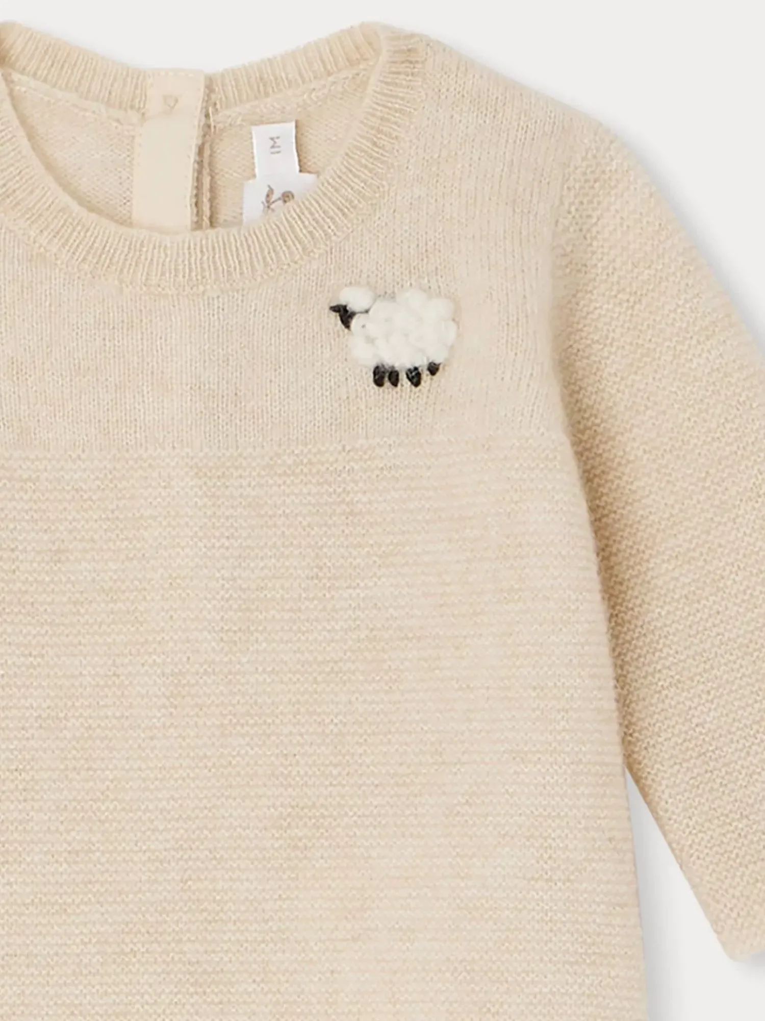 This Knitted Cashmere Tinoe Romper Is Perfect For Keeping Even Newborns Warm And Comfortable. The Chest Is Adorned With An Adorable Terry Cloth Sheep.