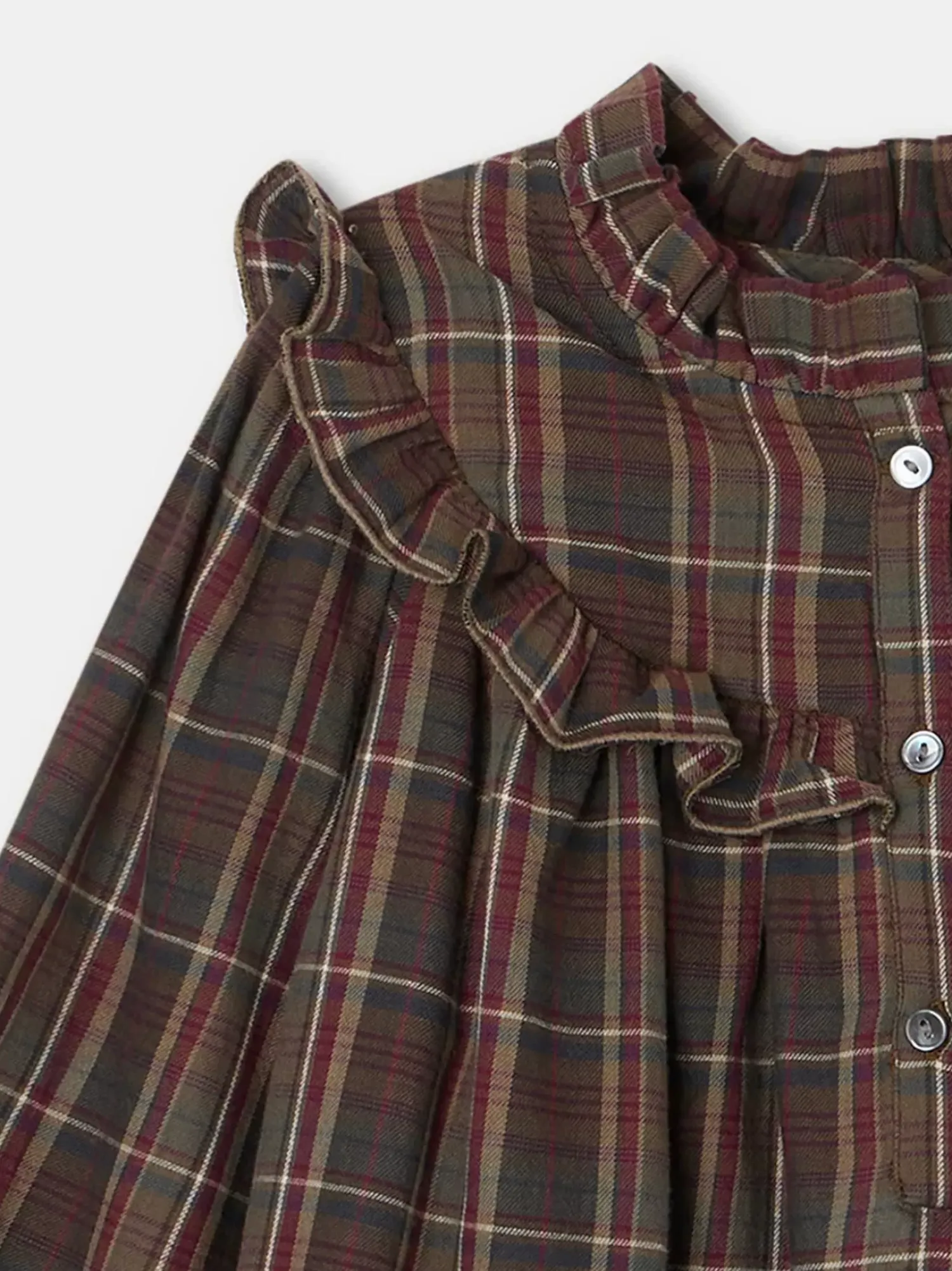 This Tish Girls’ Dress Features Elegant Ruffles At The Neckline And Cuffs, As Well As On The Chest. It Is Made Of Material Decorated With A Timeless Check Motif.