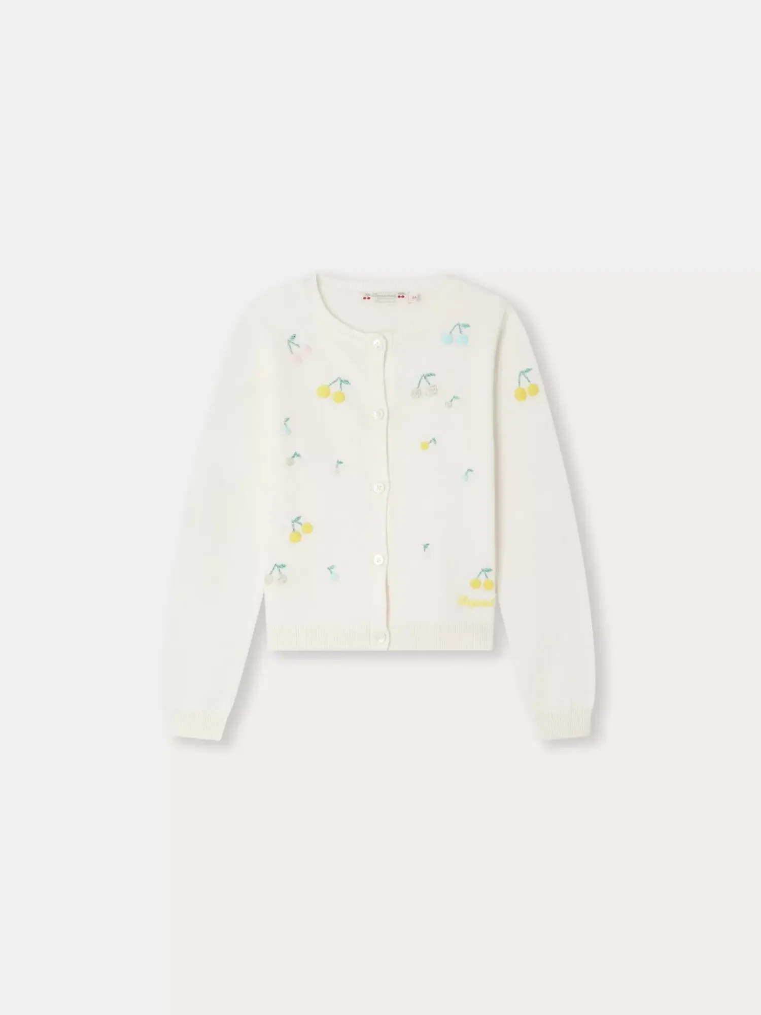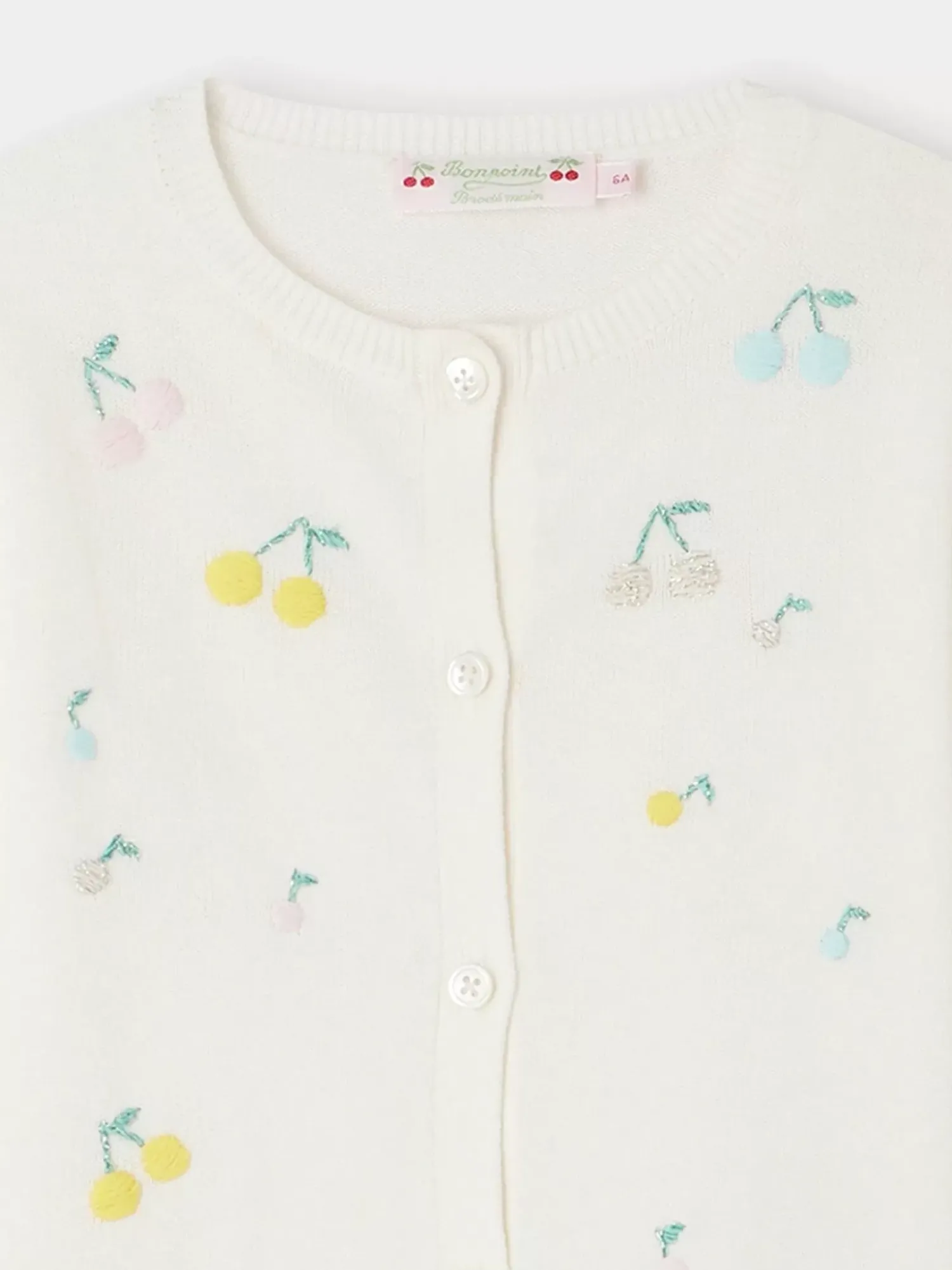 Featuring Pastel-Colored Embroidered Cherries On The Front, This Crew Neck, Long-Sleeved Toesie Cardigan For Girls Is Made From Organic Cotton. It Fastens At The Front With Five Delicate Mother-Of-Pearl Buttons.