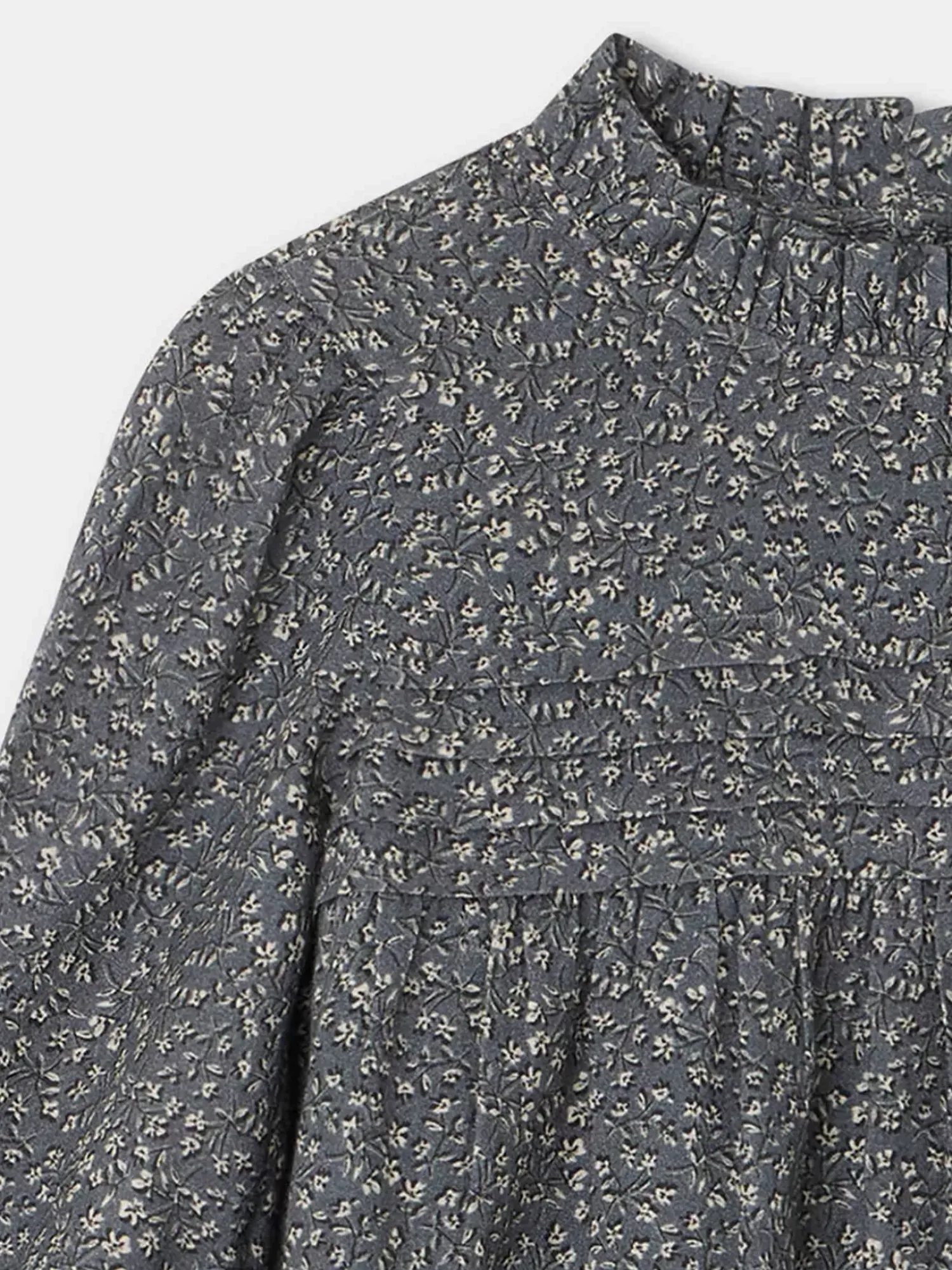 This Topaz Dress For Girls Is Made From Cotton With A Floral Print, Featuring A Pleated Collar And Long Puff Sleeves For Added Volume. It Is Enhanced By Gathering Under Soft Pleats At The Front.