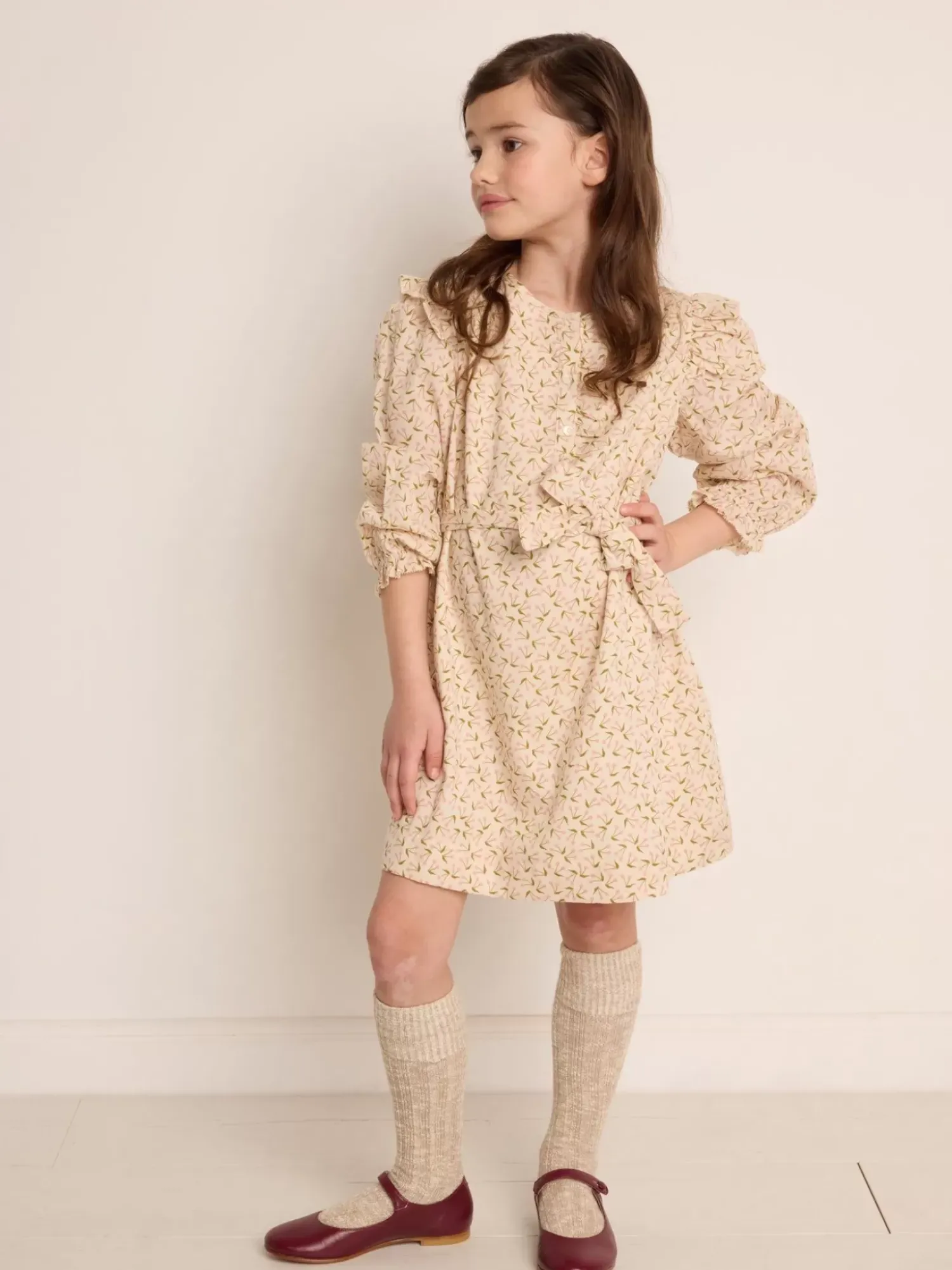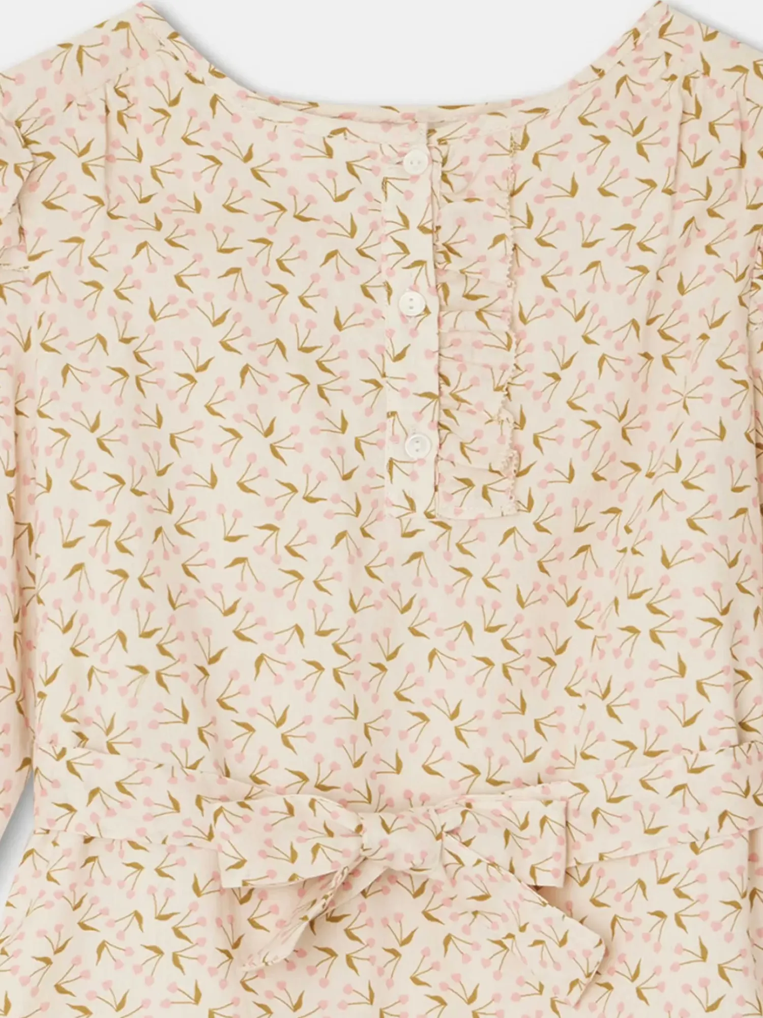 The Tosca Dress For Girls Is Made From Lined Cotton And Combines Comfort With The Volume Of A Flared Cut And Fitted Waist. This Garment Is Enhanced By Long Puff Sleeves With Little Ruffles And The Iconic Cherry Print.