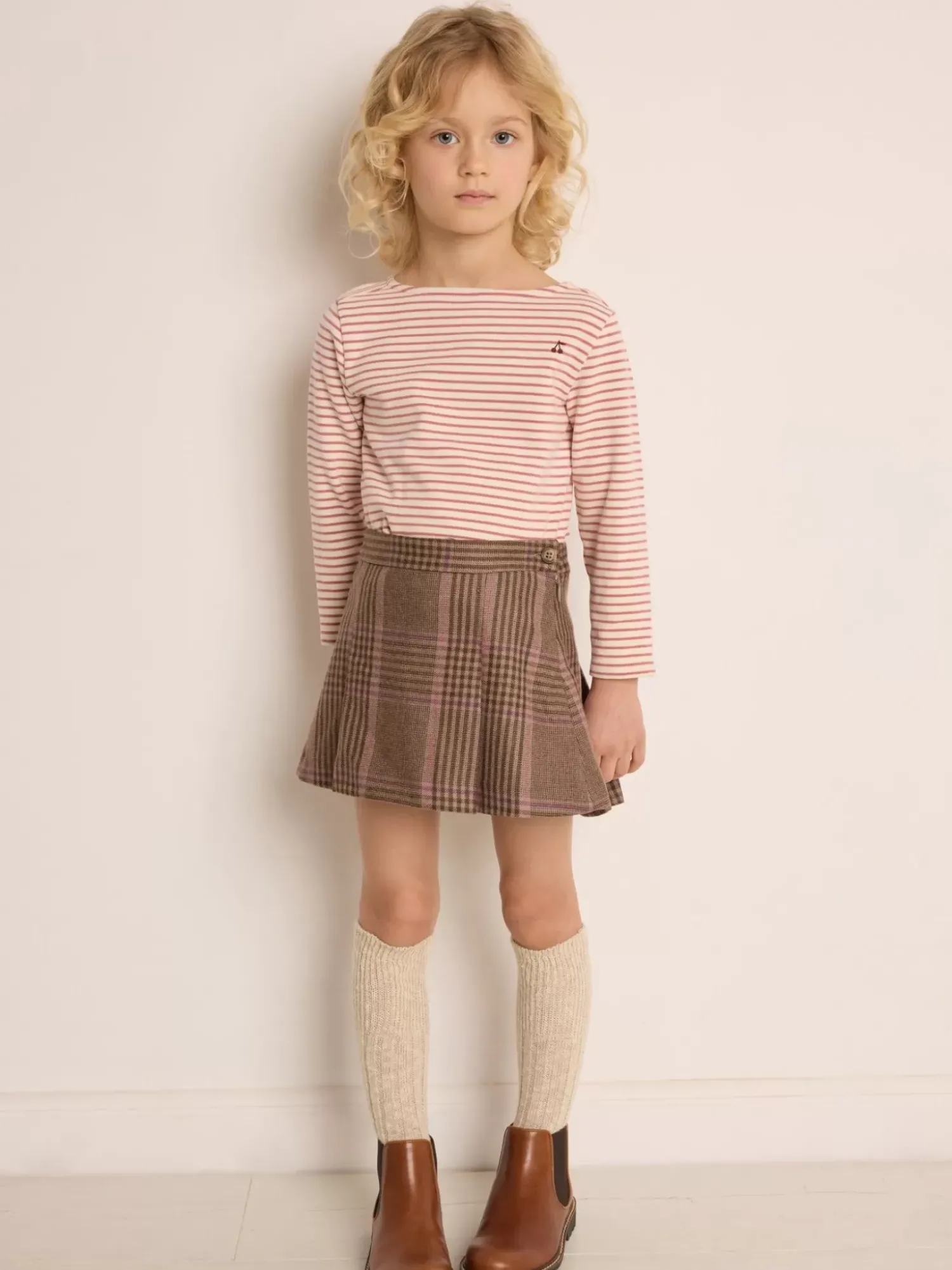 This Short Woolen Tutti Skirt For Girls Is Adorned With A Timeless Checkered Motif. The Pleats At The Front And Back Add To Its Overall Charm.
