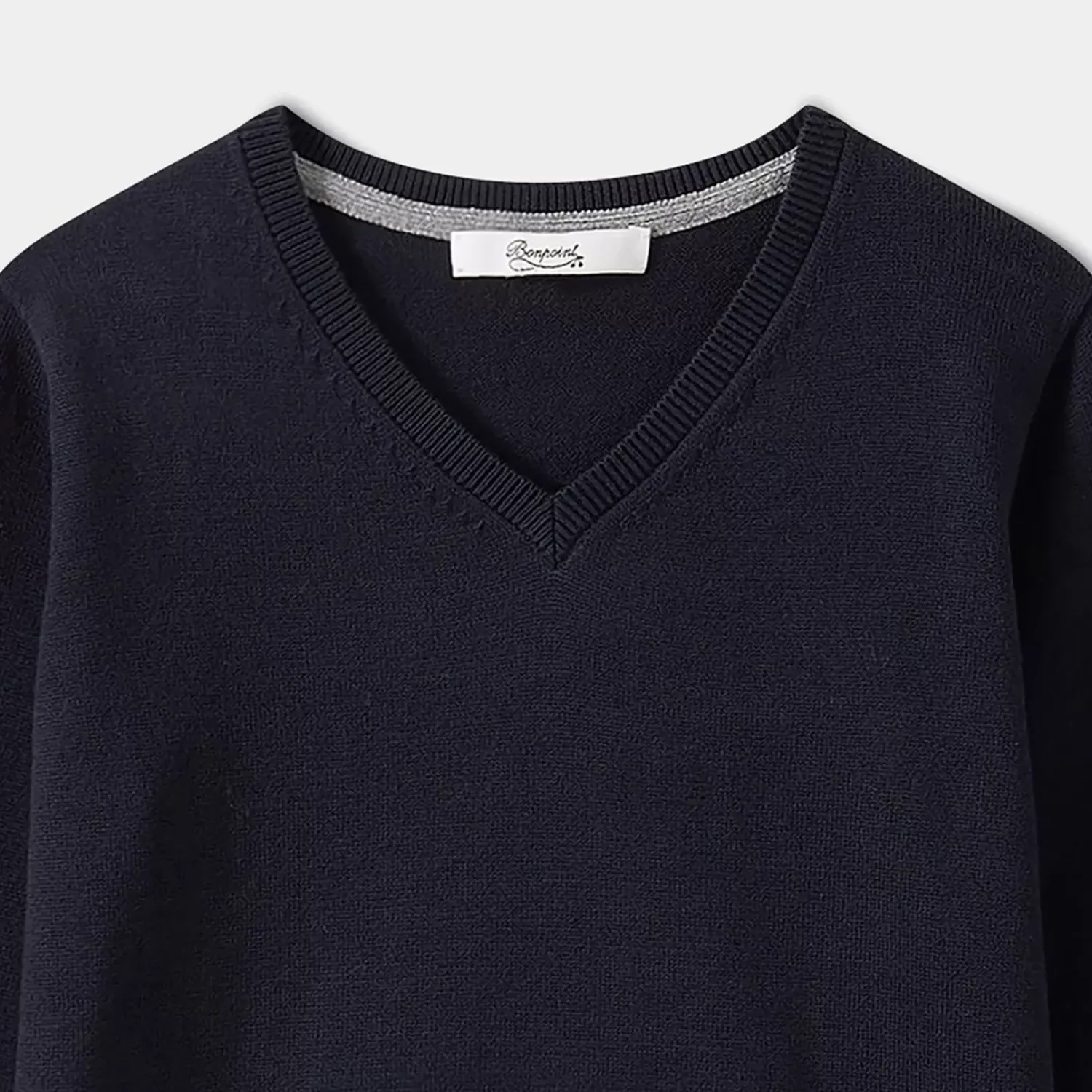 This Timeless Jumper Wraps Boys Up In The Softness Of Its Fine Knit. The V-Neck Adds A Trendy Touch.